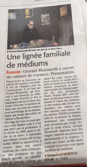Bonjour je suis GIOVANI élu meilleur MEDIUM 2011 par la presse spécialisée , en voyance directe , ma mère , ma grand mère étaient également MEDIUM vous avez des questions concernant votre avenir , je suis là pour vous aider , MEDIUM depuis la naissance en activité depuis + de 30 ans , je vous aide et vous guide pour prendre la bonne direction , je capte les évènements grace à des flashs , je suis là pour une voyance détaillée et précise honnete et sans complaisance , je suis à votre écoute pour vos affaires de coeur, d'argent , professionnelles , santé et autres.......